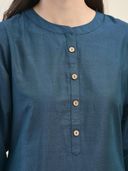 Navy Blue Color Calf Length Solid Kurta Has 3/4 Sleeves, Mandarin Collar Neck, Both Side Slits, One Side Pocket, Straight Hemline, Kurta Made From Poly Silk Fabric.