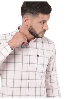 Men Casual Modern Slim Fit Checks Shirt Grey