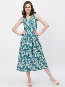 Lavender Floral Printed Gather Detail Half Sleeve Midi Dress