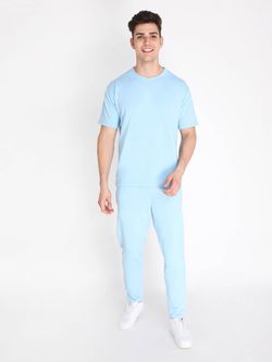 Men Blue Solid Regular Fit Co-Ord (Set of 2)
