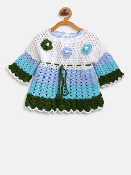 Hand Knitted Crochet Baby Girl Turquoise Frock and Jacket (Set of 2)