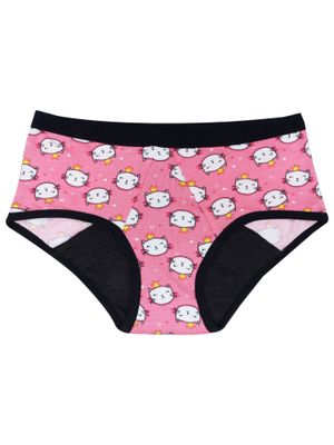Kitty Print Microbial Lining Period Panties for Girls, No Pad Required Pink