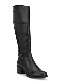 Brown Women Vegan Leather Low Heel Knee Buckle Boots