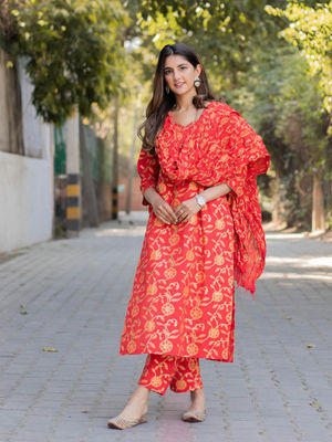 Mahira Cotton Kurta & Pant With Dupatta Straight Suit (Set of 3)