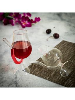 Borosilicate Double Walled Glass Petite Cups with Handle - Transparent- 250 ml - Pack of 4