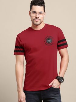 Red Mickey and Friends Graphic Printed Oversized T-Shirt for Men