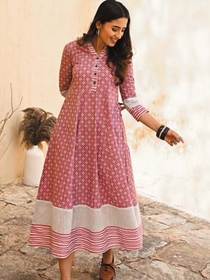 Tulsi Pink Banarasi Fit & Flare Maxi Dress