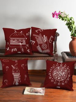 Ornaments and Charms Printed Red Cushion Cover