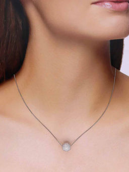 92.5 Silver Women Zircon Studded Bow Pendant Necklace