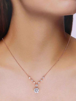 92.5 Sterling Silver- Rose Gold Stunning Solitaire Necklace