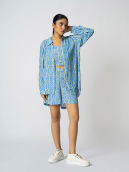 Rhombus Icy Blue Collar Neck Jacket with Inner and Shorts (Set of 3)