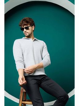 Men Indigo Acrylic Textured Regular Fit Sweater
