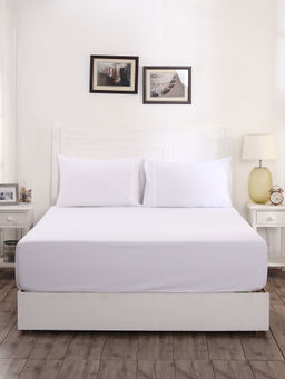 Colorart Slumber Solid 200TC White Fitted Sheet With 2 Pillow Covers (Set of 3)
