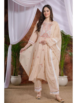 Beige Handblock Printed Kurta with Trousers & Dupatta (Set of 3)