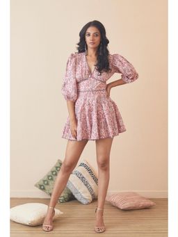 Pai Peach & Hot Pink Applique Tie Up Stitched Blouse