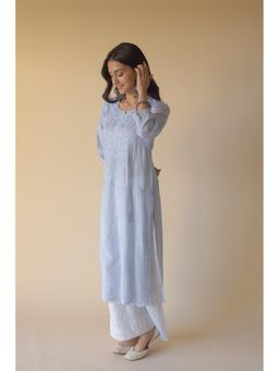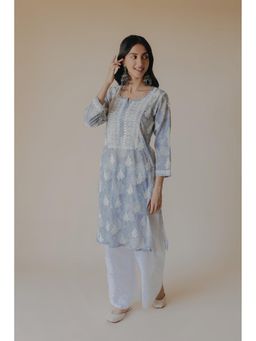 Shireen Yellow Cotton Floral Kurta With Sharara And Dupatta (Set of 3)