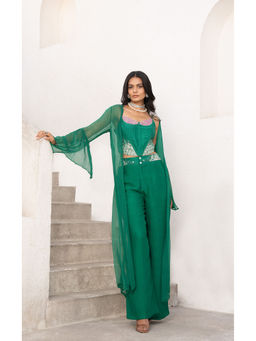Gulbahar Basil Green Mirror Crop Top With Pant & Jacket (Set of 3)
