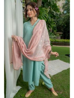 Green Embroidered Kurta & Cotton Pant (Set of 2)
