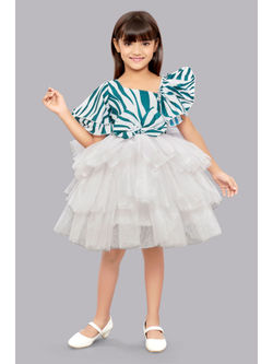 Girls Beige Cotton Frill Sleeves Layered Dress With Matching Clip
