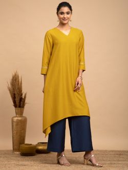 Rust Linen Blend Solid Kurta with Pant (Set of 2)