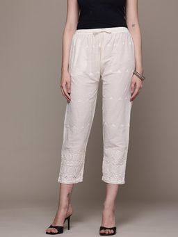 Women Cotton Fabric Chikankari White Colour Palazzo
