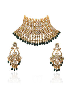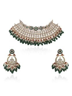 Small One Layer Choker Hanging With Green Beads With Star Shaped Jhumki (Set of 2)