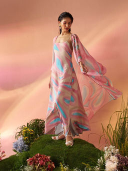 Multi-Colour Dye-Print Cape with Dress (Set of 2)