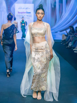 Ivory Skirt Style Pre Drape Saree with Stitched Blouse