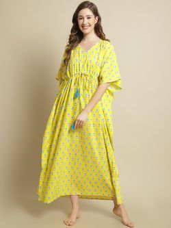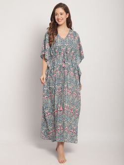 Light Green Floral Cotton Maternity Kaftan