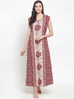 Women's Maroon Woolen Nighty For Winter