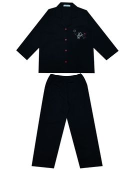 Cotton Black Unicorn Print Long Sleeve Women's Night Suit | Lounge Wear