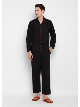 Ultra Soft Black Modal Satin Long Sleeve Women's Night Suit |Lounge Wear