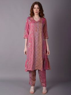 Chanderi Pink Embroidered Kurta with Salwar Dupatta