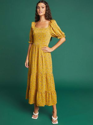 Women Teal Ruffle Sleeve Tired Maxi Dress