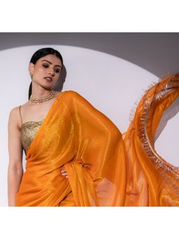Gold Solid Saree with Unstitched Blouse
