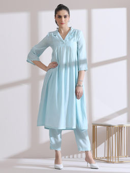 Prft Lux Pink Embroidered Kurta with Air Skin Green Pant (Set of 2)