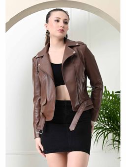 Women'S Dark Black Solid Light Weight Leather Crop Jacket