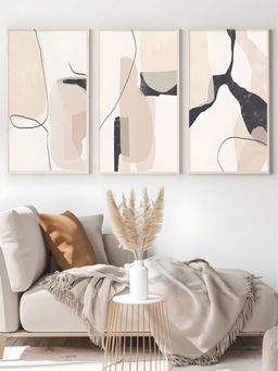 Beige Black Natural Hues Printed Framed Canvas Wall Art (Pack of 3)
