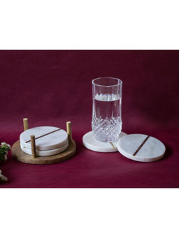 The Pitara Project - Coasters Wooden Printed Moroccan Red & Gold Motif