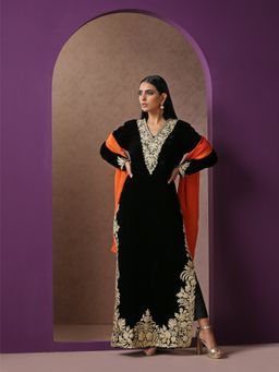 The Black Coord Set Includes A Velvet Kurta And Straight Fit Pants (Set of 2)