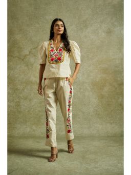 Off White Flared Silk Tunic with Red Tulip Pants. (Set of 2)