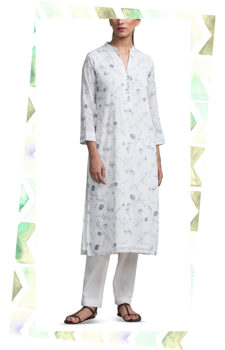 How stunning and crisp is this kurta from TulsiOnline, a label championed by Neeru Kumar! Created in pure cotton and laced with clean simple cuts, this is the kurta you can laze around in. Mix it up with beautiful jhumkis and ace your summer game!