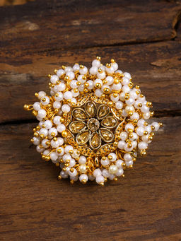 Ambada/Veni Phool – This is a type of ornament that is used to decorate the hair bun. A traditional Marathi jewellery design of ambada is accented with sparkling stones and is completed in a gold finish.