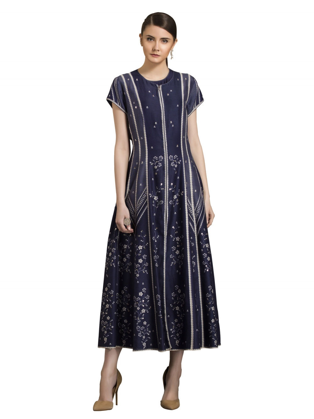 Shraddha glowed in a navy-blue hand embroidered Anita Dongre Grassroot ensemble cinched at waist with a corset-belt. Beautifully styled by Tanya Ghavri, Shraddha’s long braided hair and a dainty choker perfectly complemented the look.