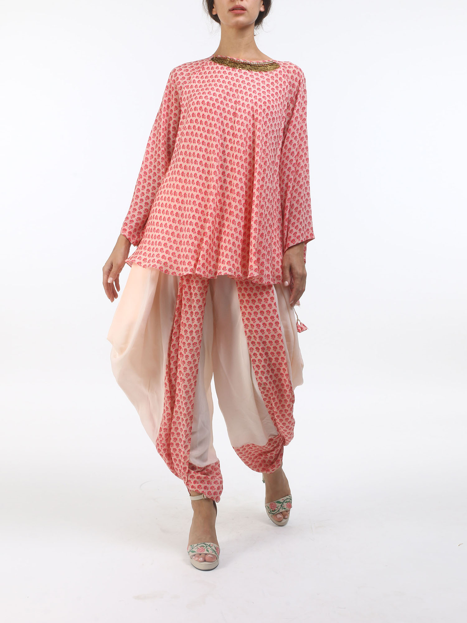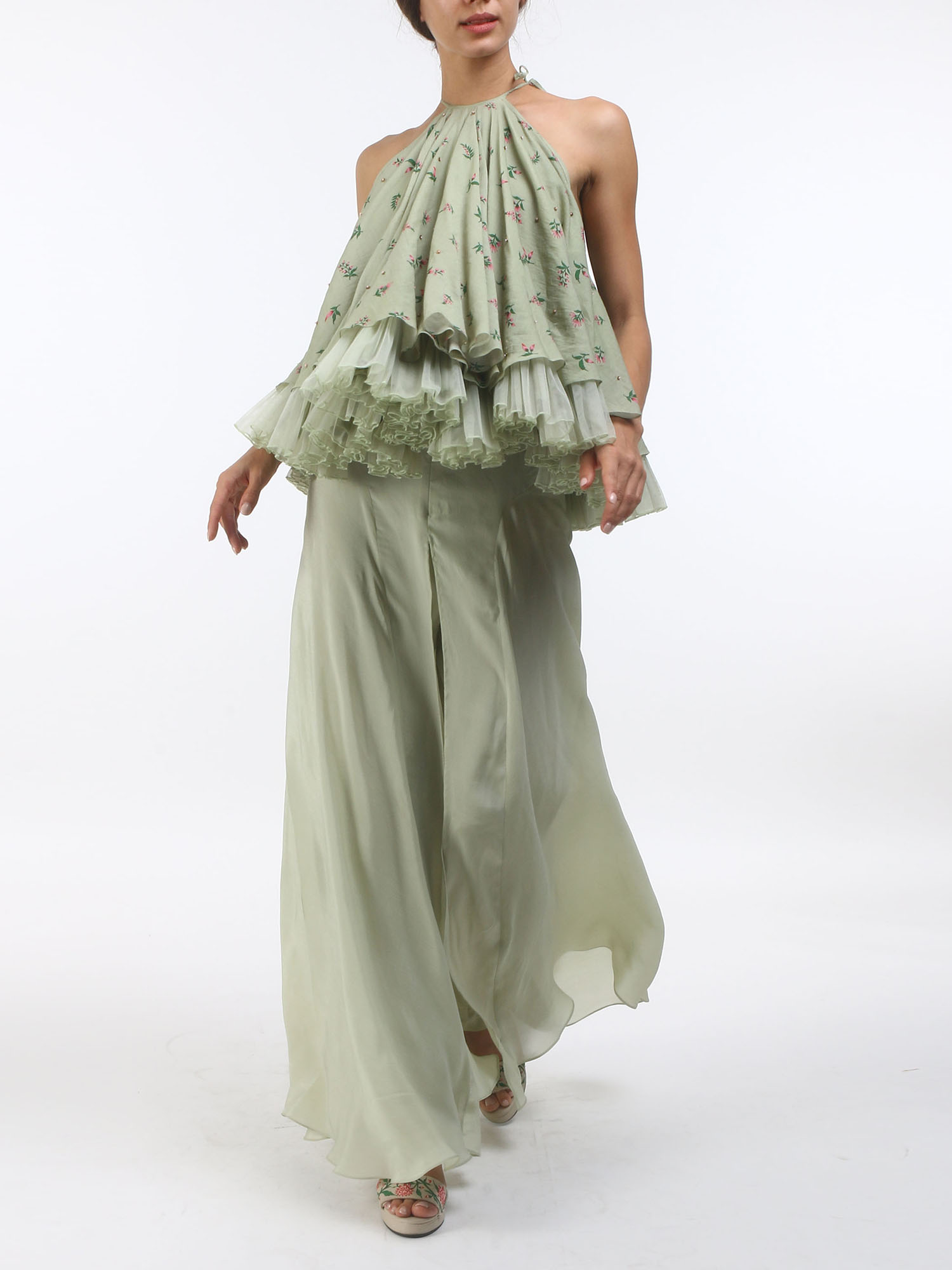 Spotted in Delhi with her co-star Ishaan Khattar, she picked Nikasha’s printed floral halter top with mint and floral dhoti pants. Perfect for country’s hot and humid weather, it was by far the most exciting fusion ensemble seen on her. This one can easily transition from festive wear to casual-chic when done right.