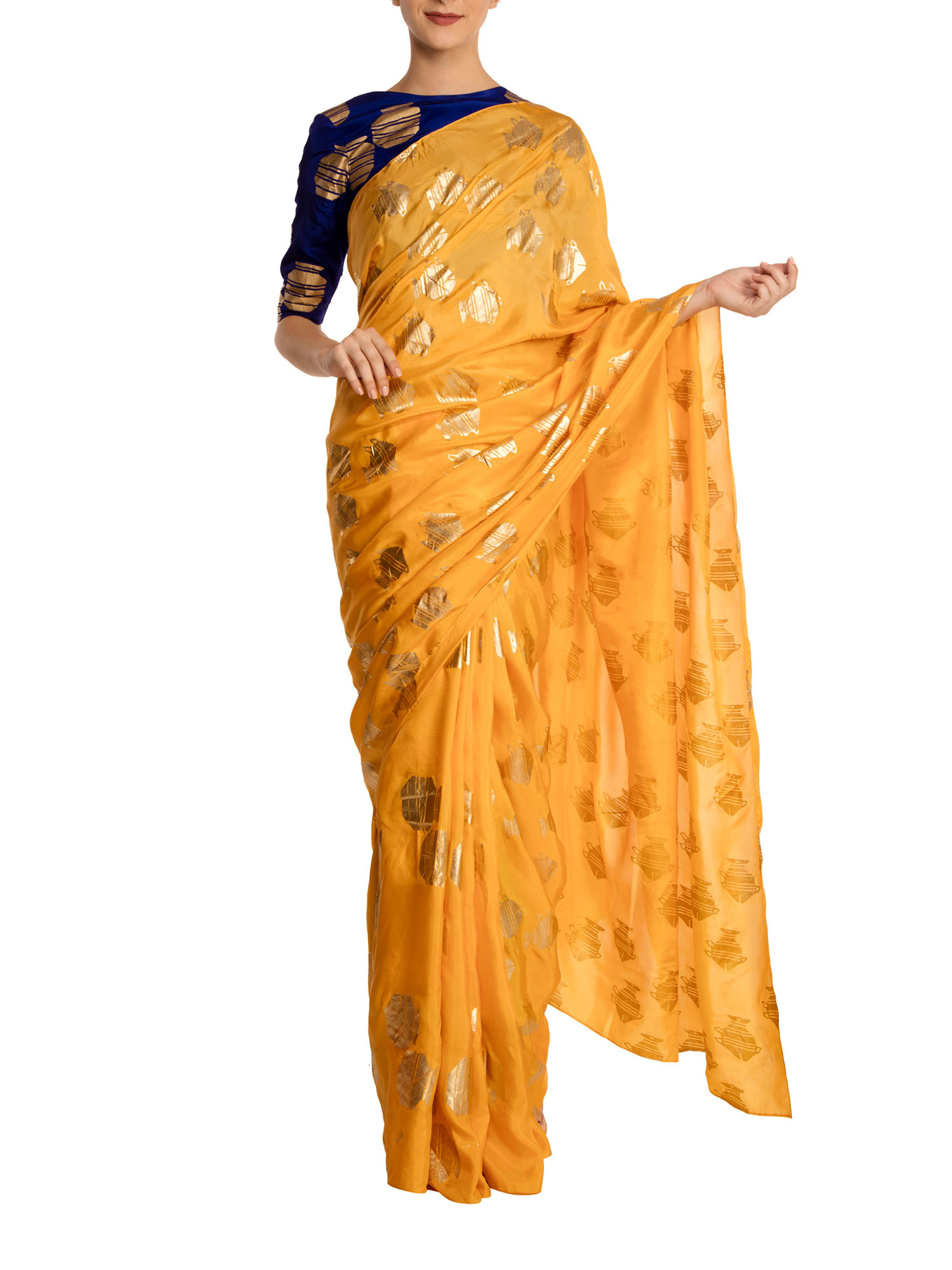 While a zealous touch of temple jewellery enhanced the gold foil prints of the interesting ensemble, the superstar balanced out her look with a muted face, heavily kohled eyes and sleek hair.