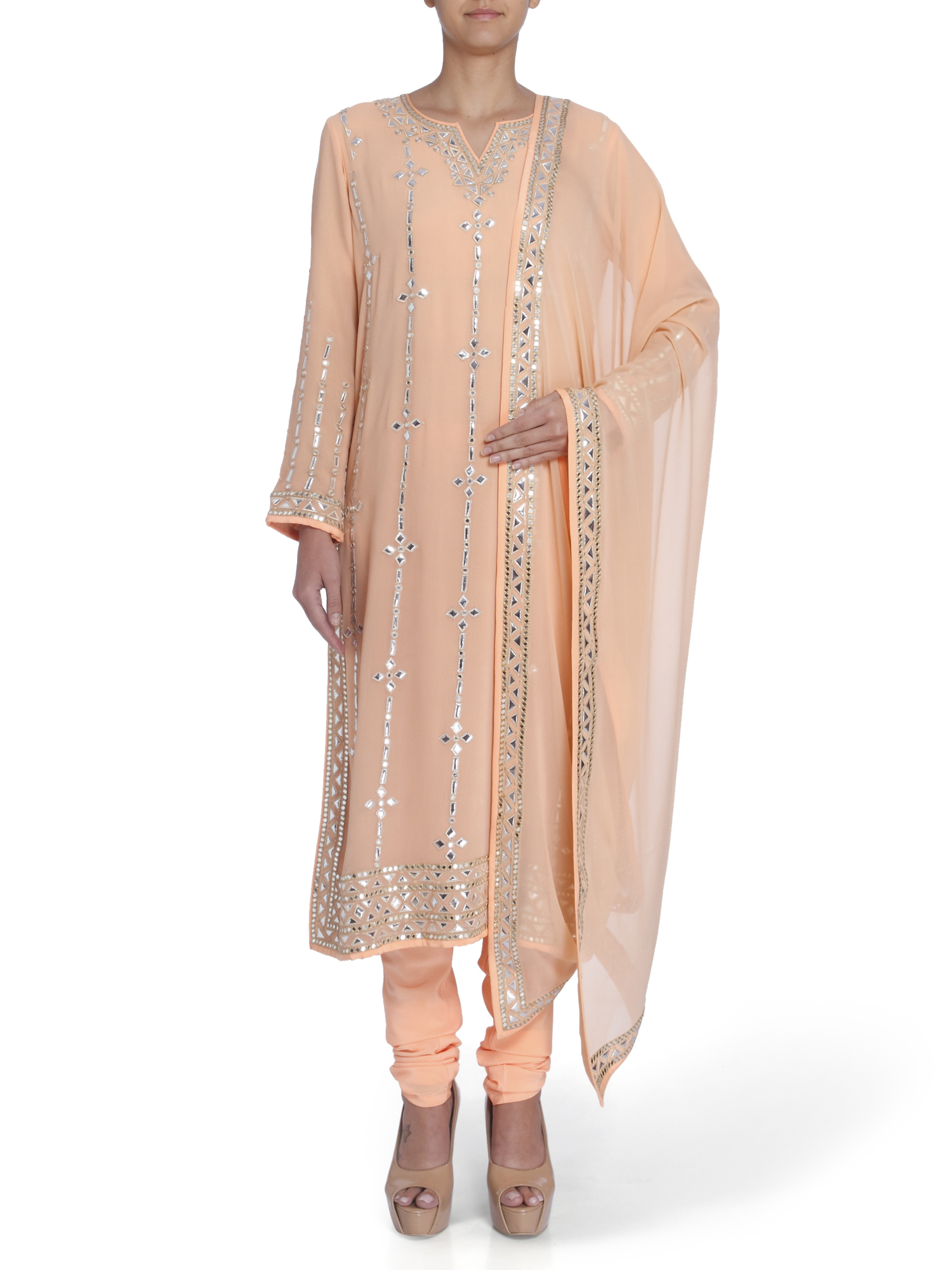 Art Deco Mirror Straight Kurta With Dupatta & Memoni
