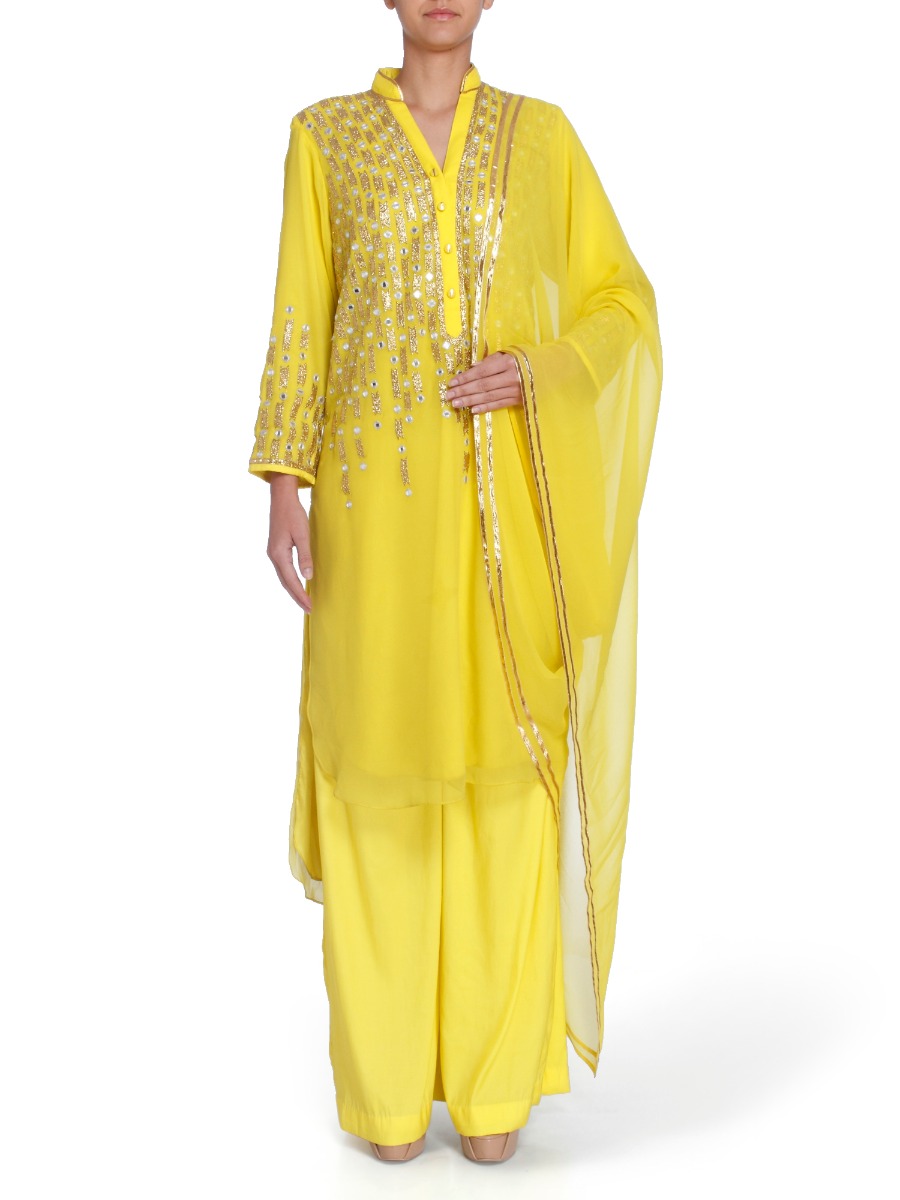 Speaking of which, how can we miss out the simple yet sartorial three-piece set that Rhea Kapoor sported from their Gulabo line on her sister’s mehendi! Her statement danglers only added to the style quotient.