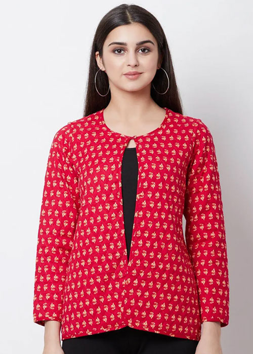 #5 Masaba Gupta wearing this gorgeous red quilted jacket with a bandhani silk top