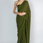 After all these years of tracing her sartorial journey, we can safely say that Kapoor Ahuja can pull off the coolest contemporary outfit just as well as she can the trickiest ethnic ensemble. Case in point: the starlet stepped out wearing a moss green Masaba sari featuring the designer’s signature micro-floral prints. She paired the sari with a billowing blouse to match. While it’s not Kapoor Ahuja’s first stint with the sari or the designer, what struck us the most about her ensemble was the ease with which she threw the oxidised silver accents to the mix – almost made us wonder if her mood board for the day was replete with vintage references. She accessorized her look with oxidised temple jewellery and an oxidised silver mini bag to add to the appeal. She kept her face bare with only a generous dose of kohl on her eyes – we love! Let’s just say, for those of us who were looking for fuss-free options for the festive season, we couldn’t thank Sonam enough for serving us this sartorial inspiration. If you agree with us, then get shopping from the links below!